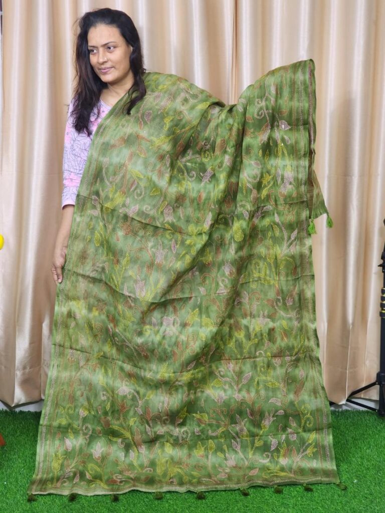 Pride Cotton Ti-Di Hand Work Orna-Olive Green