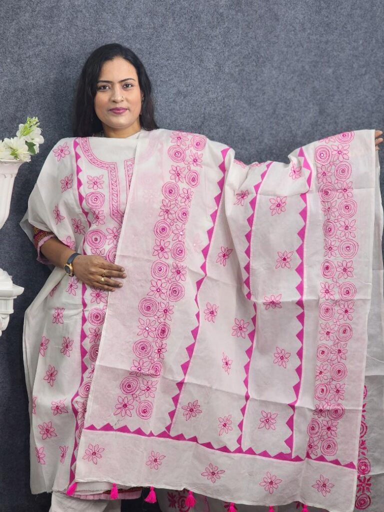White Handwoven Cotton Unstitch Dress-AR Unique