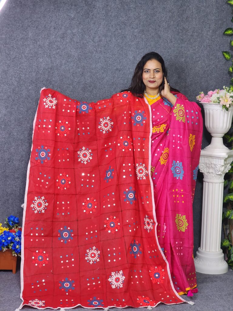 হাতের কাজ করা গোলাপি ওড়না