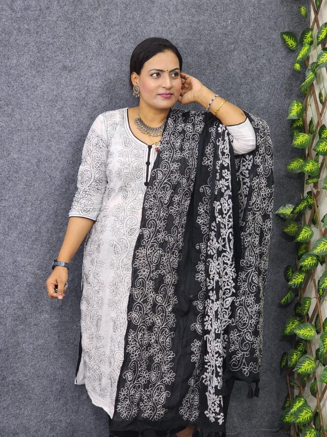Exclusive Lucknow Work Unstitch Dress -Black And White