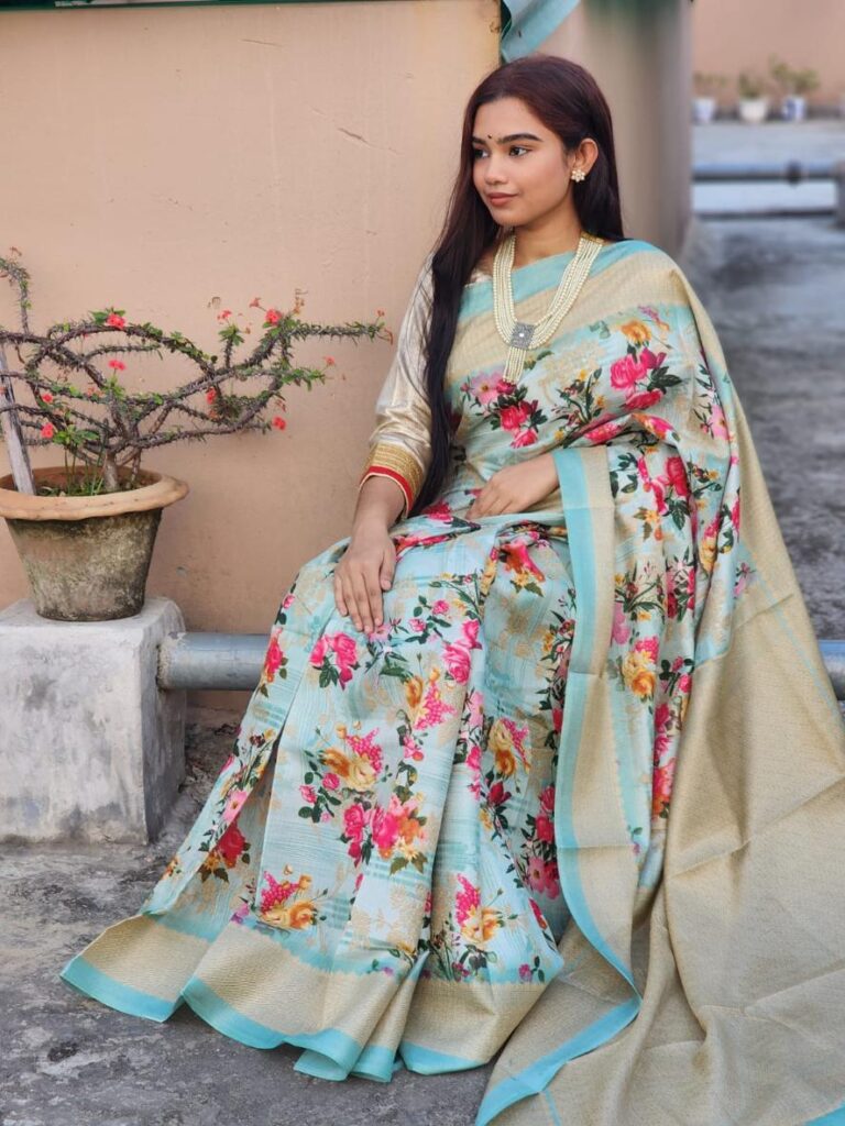 Hand Work Designer Semi Muslin Saree – Perfect for Wedding Guest