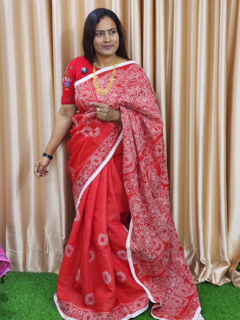 হাতের কাজের লাল সাদা শাড়ী