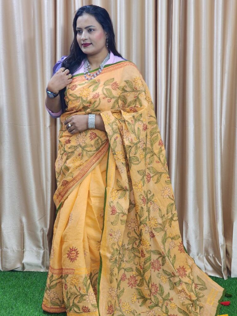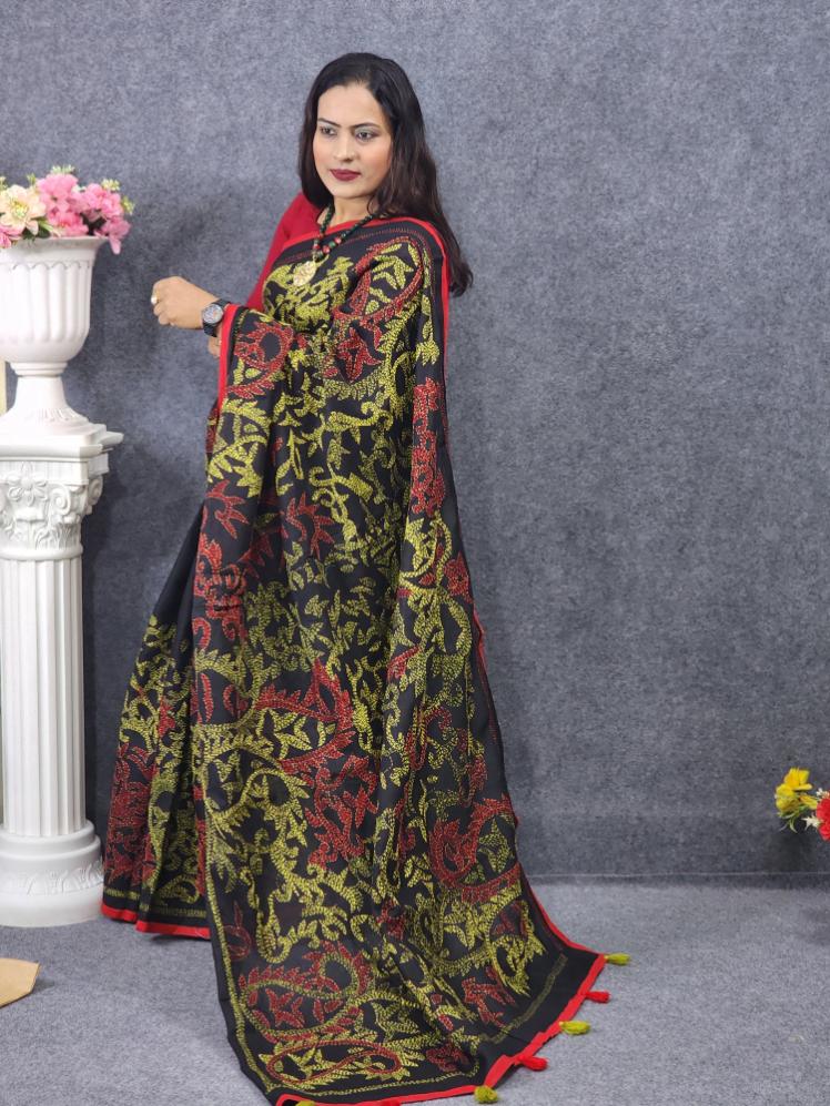 Hater Kajer Lal Ronger Lucknow Stitch Saree