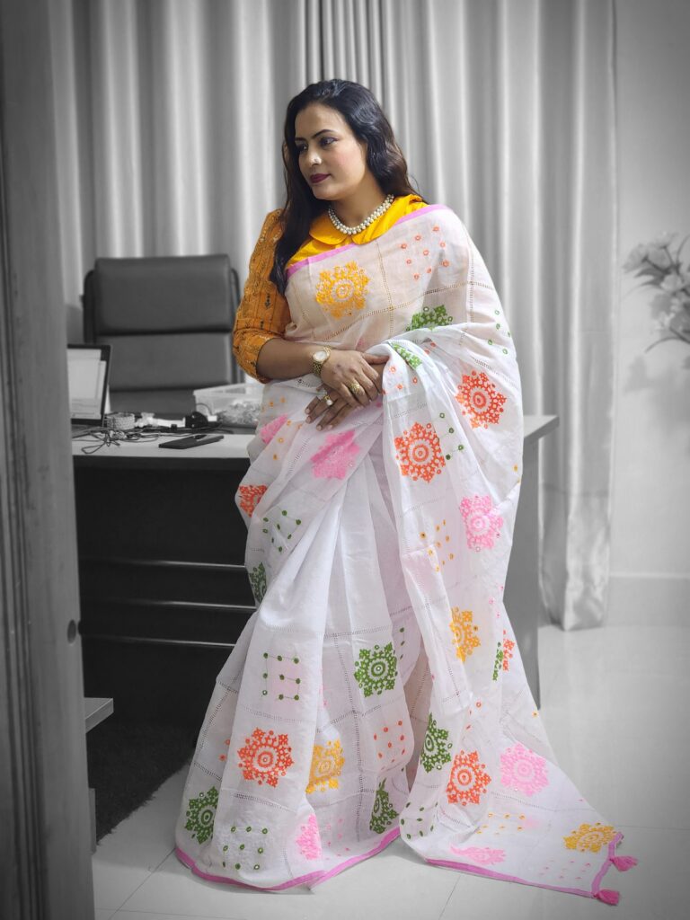হাতের কাজের সুতি শাড়ী ডিজাইন বিডি শপ