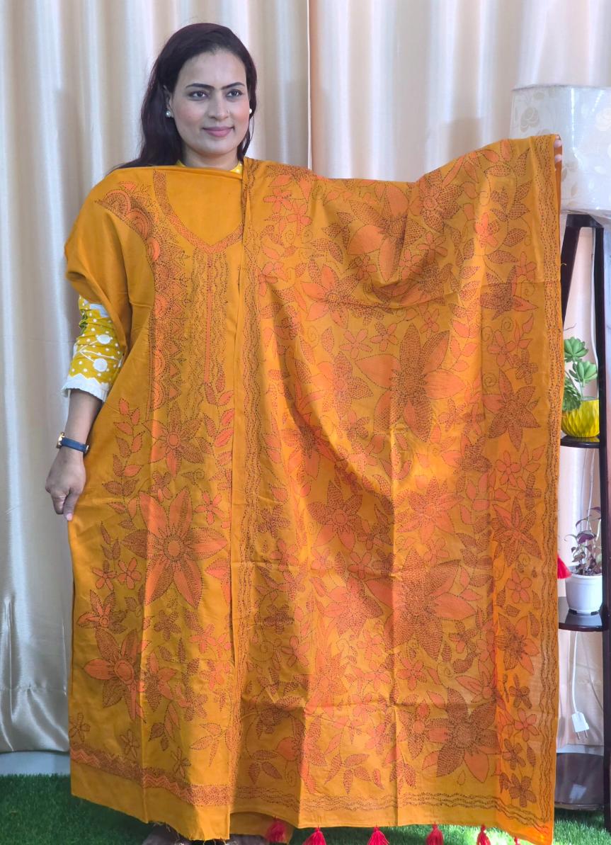 কাঁঠালি রং এর সুতি হাতে কাজের ড্রেস