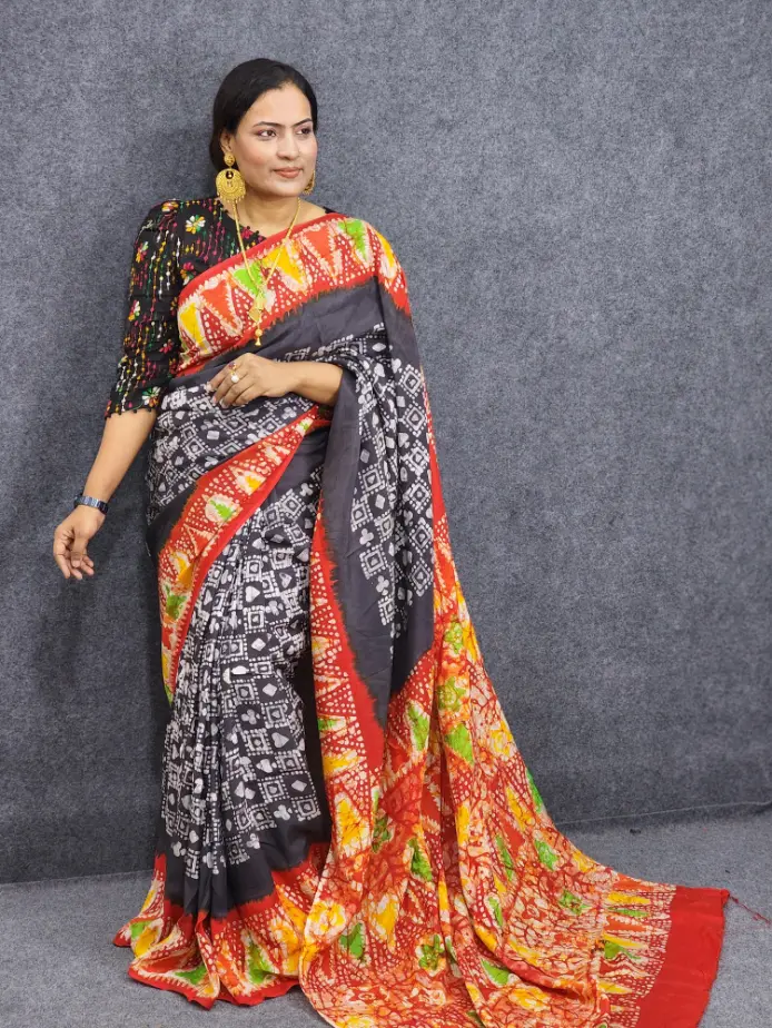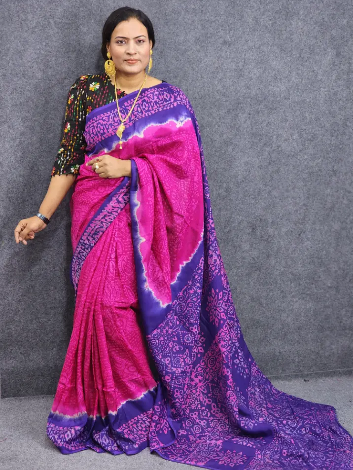 মিড বাজেটে প্রিমিয়াম লুক খুঁজছেন এমন নারীর জন্য পারফেক্ট পছন্দ আমাদের এই বাটিক সিল্ক কম্বো শাড়ী।
