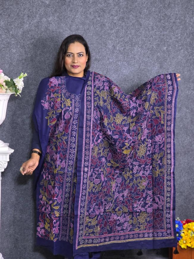 Hand Made Pure Cotton Blue Colour Unstitch 3Pis