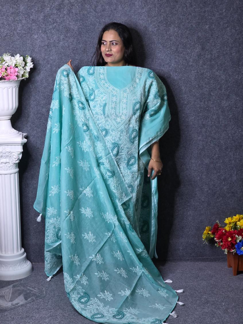ড্রেস রং – light Pest With Lucknow Stitch