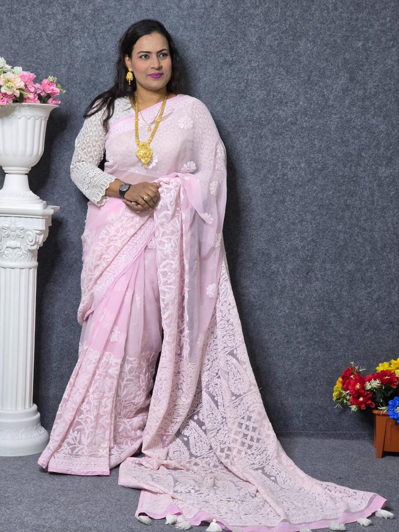 Pure White Georgette Lucknow Saree Original price was: 10,500.00৳ .Current price is: 5,500.00৳ .
