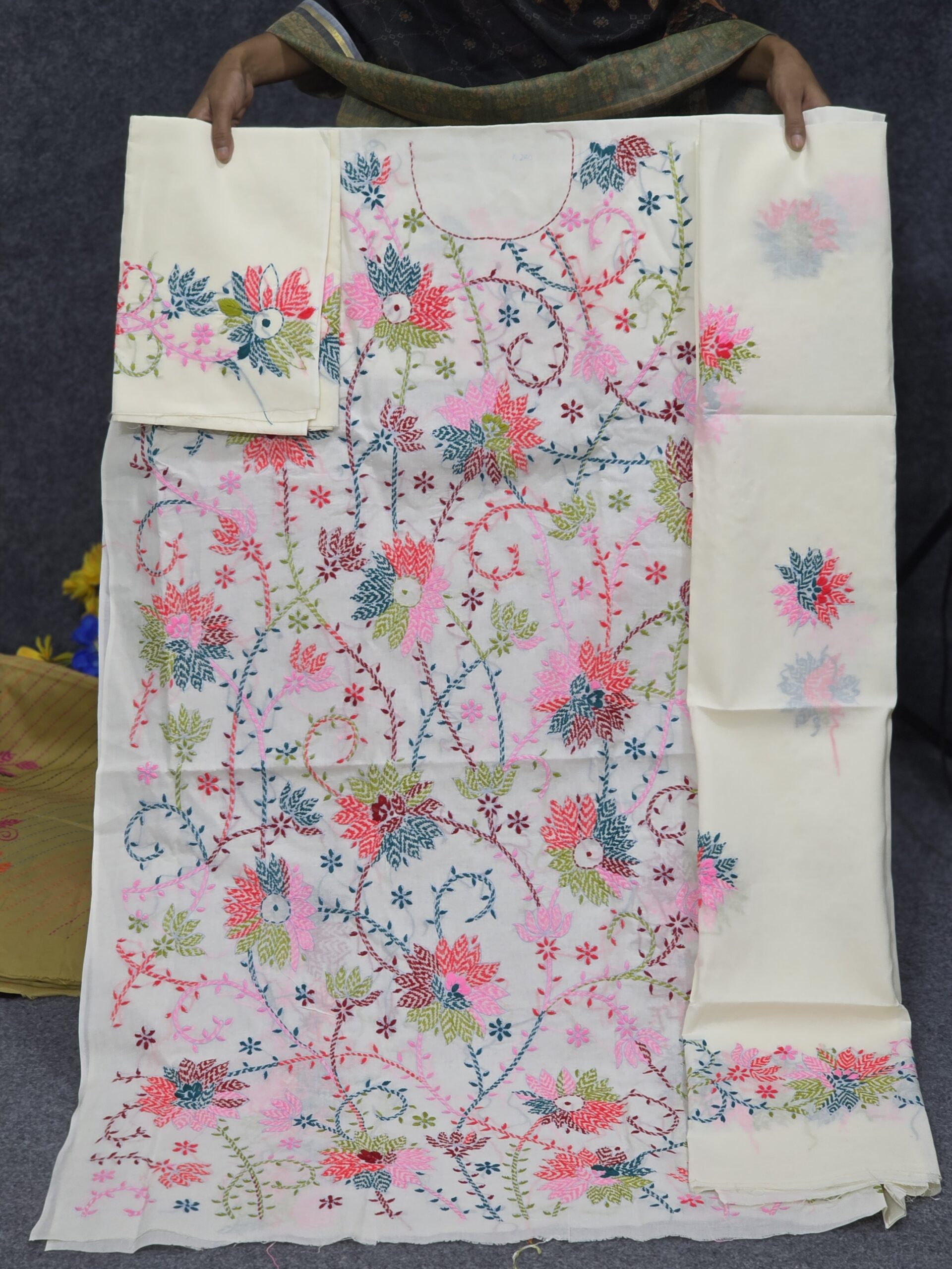 ওড়নার মাপ- 2 /৫ হাতের  , প্যান্টের কাপড় আড়াইগজ দেয়া আছে এবং কাজ করা আছে