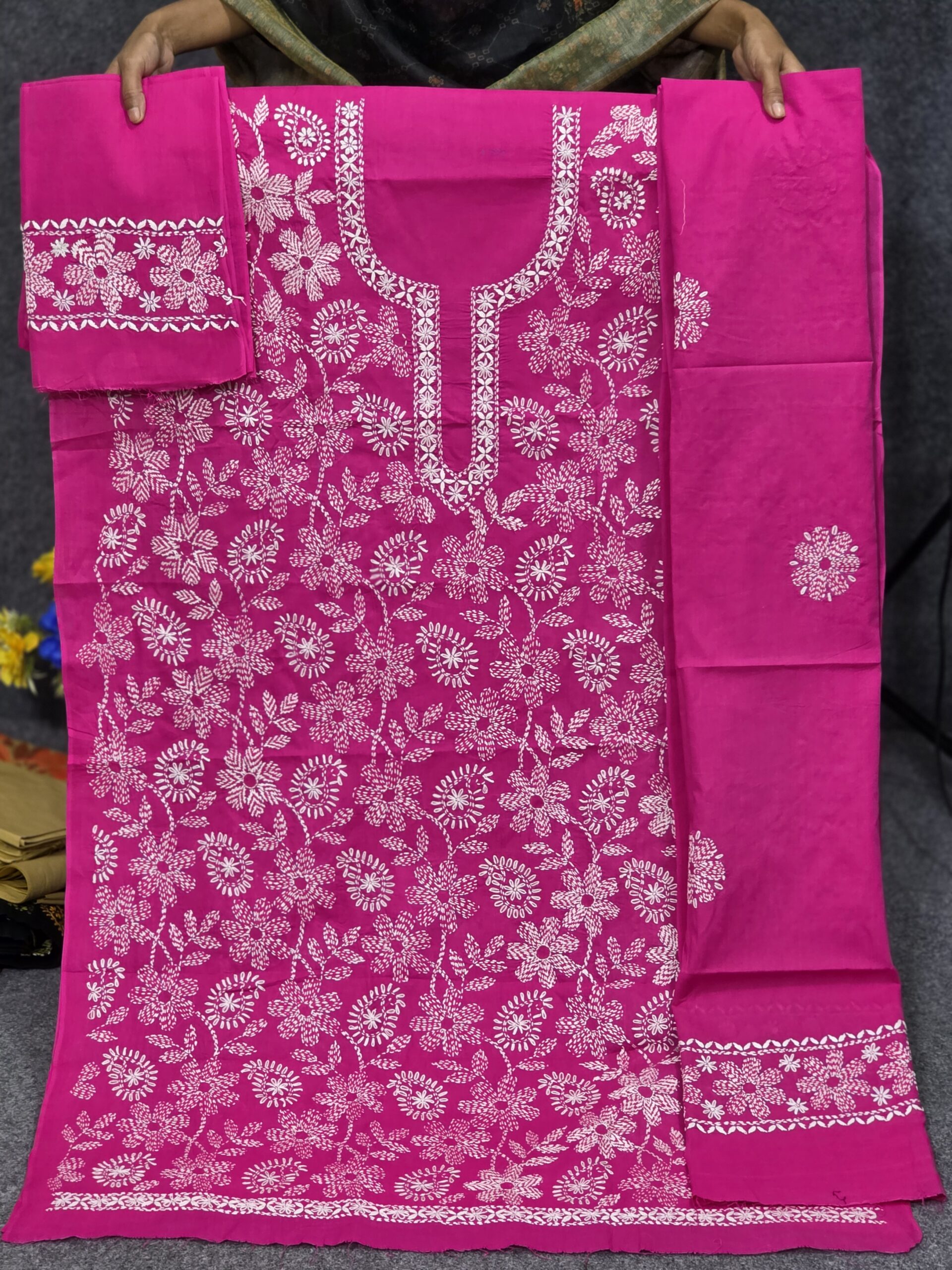 ওড়নার মাপ- 2 /৫ হাতের , প্যান্টের কাপড় আড়াইগজ দেয়া আছে এবং কাজ করা আছে