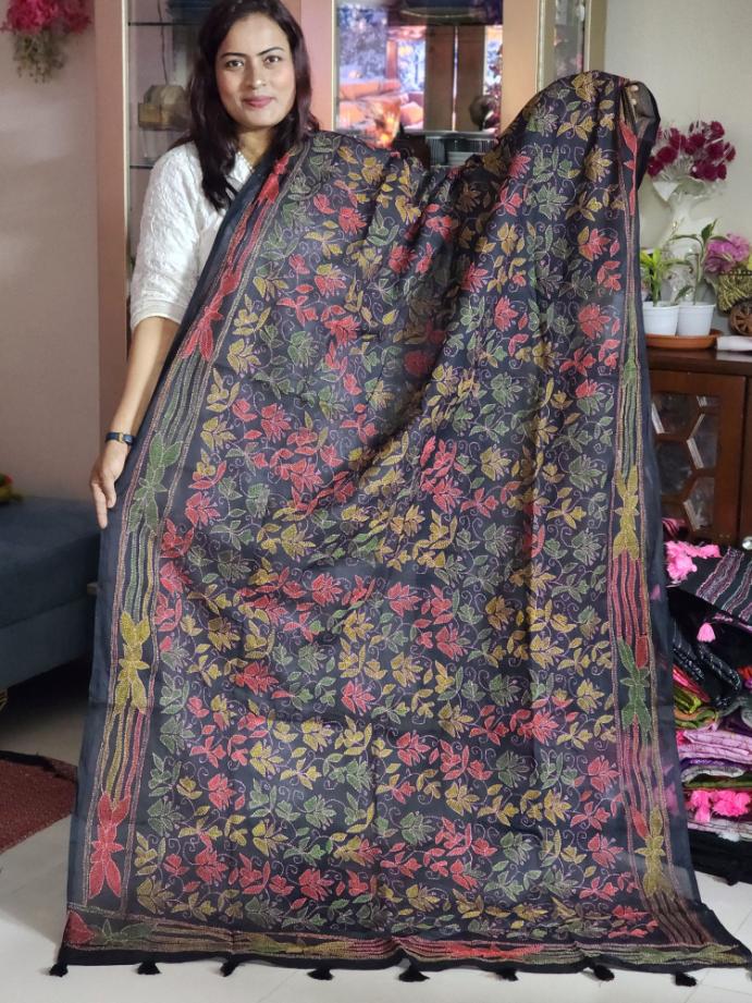 Multi Colored Thread Work In Black Orna