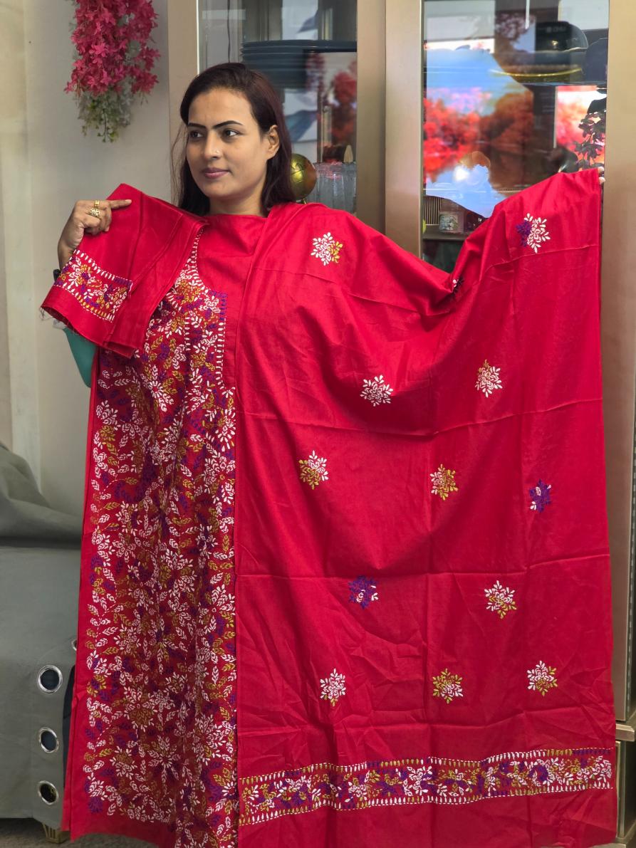 Red Color Hand Embroidery Dress