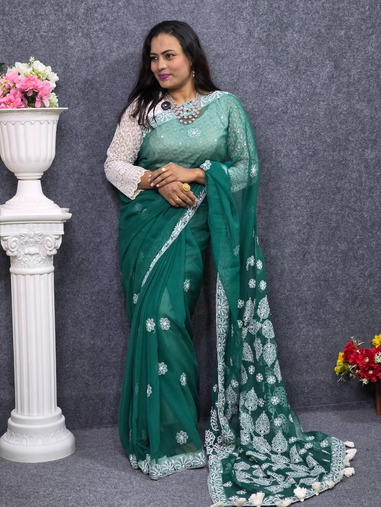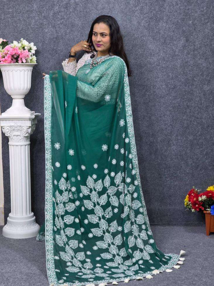 Sky Color Georgette Saree Lucknow Stitch Work Original price was: 10,500.00৳ .Current price is: 5,500.00৳ .
