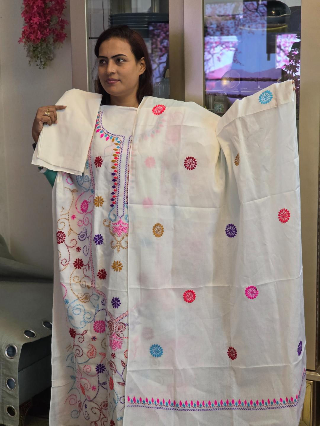 ওড়নার মাপ- 2/৫ হাতের, প্যান্টের কাপড় আড়াইগজ দেয়া আছে এবং কাজ করা আছে
